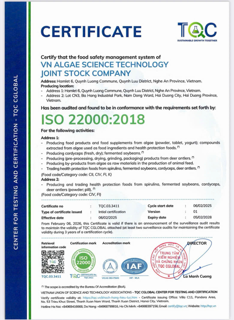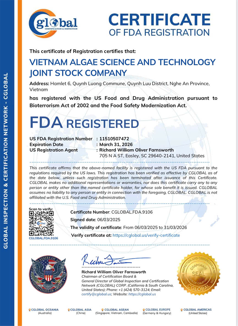 Là công ty đi đầu trong việc nghiên cứu và phát triển sản phẩm Tảo Xoắn Spirulina ở Việt Nam hợp tác và áp dụng công nghệ của Nhật Bản.